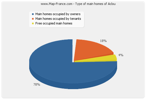 - Number of main homes of Aclou occupied by owners : 82 - Number of main homes of Aclou occupied by tenants : 19 - Number of main homes of Aclou occupied free of charge : 4 |