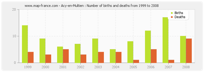 Acy-en-Multien : births and deaths from 1999 to 2008