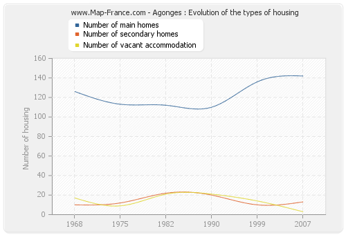 The number of housing of Agonges was 158 in 2007, 160 in 1999, 151 in 1990, 155 in 1982, 134 in 1975 and 153 in 1968.