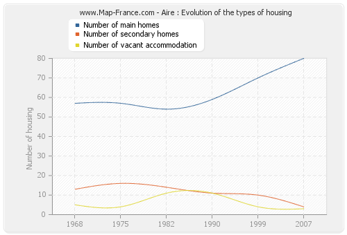 The number of housing of Aire was 87 in 2007, 84 in 1999, 81 in 1990, 79 in 1982, 77 in 1975 and 75 in 1968.