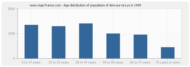 Distribution of the population of Aire-sur-la-Lys by age in 1999 :