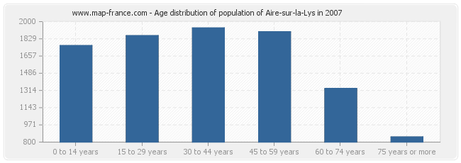 - Population of Aire-sur-la-Lys from 75 years or more : 852 inhabitants