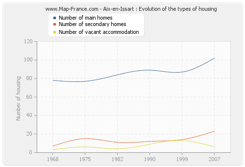The number of housing of Aix-en-Issart was 131 in 2007, 114 in 1999, 110 in 1990, 99 in 1982, 98 in 1975 and 88 in 1968.
