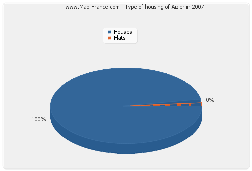 In 2007 the accommodations of Aizier consisted of 53 main homes, 23 second homes and 3 vacant accommodations.