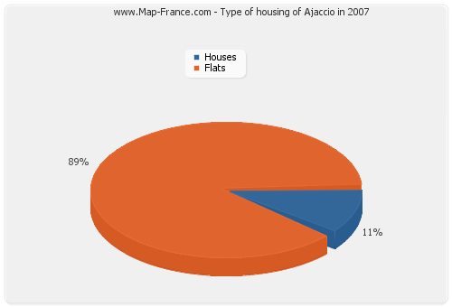 The accommodation of Ajaccio in 2007 consisted of 3 272 houses and 27 285 flats.