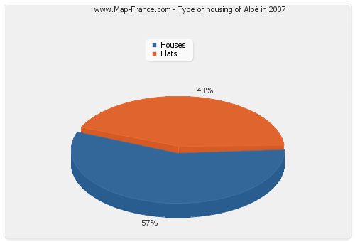The accommodation of Albé in 2007 consisted of 207 houses and 156 flats.