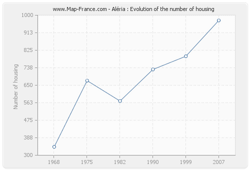 The number of housing of Aléria was 974 in 2007, 795 in 1999, 729 in 1990, 571 in 1982, 673 in 1975 and 342 in 1968.