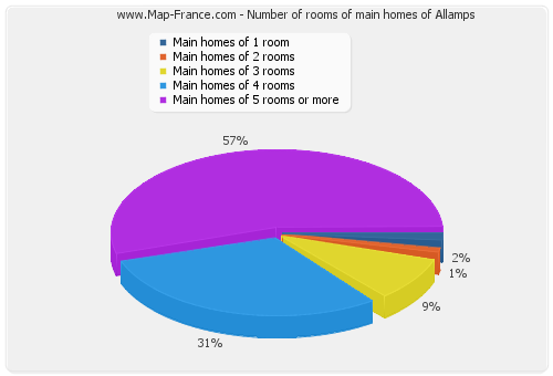 - Number of main homes of Allamps of 1 room : 3 - Number of main homes of Allamps of 2 rooms : 2 - Number of main homes of Allamps of 3 rooms : 18 - Number of main homes of Allamps of 4 rooms : 18 - Number of main homes of Allamps of 5 rooms and more : 112 |