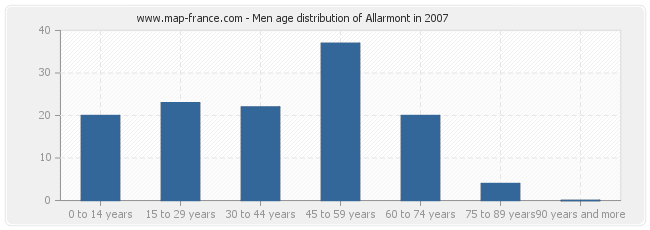 Men population distribution of Allarmont by age in 2007 :