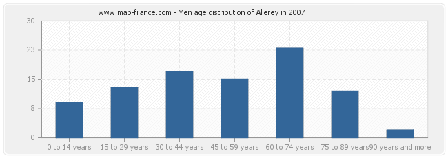 - Allerey men inhabitants from 60 to 74 years : 23