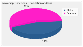- Men inhabitants Allons in 2007 were 76 - Women inhabitants in 2007 were 98