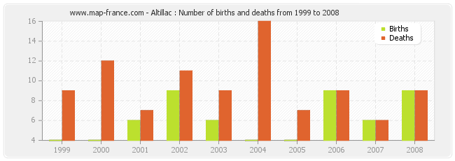 This population Census of the town of Altillac was made without duplicated data, which means that each Altillac resident that have ties to another municipality is counted only once for the two municipalities.