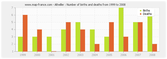 - Altwiller in 2006 : 7 births and 3 deaths
