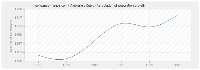 This curve shows the history of the population of Ambierle from 1968 to 2007 in cubic interpolation. This provides more precisely the population of the municipality of Ambierle the years where no census has been taken.