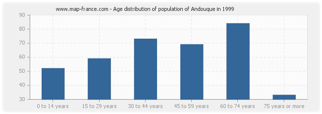 - Population of Andouque from 60 to 74 years : 84 inhabitants