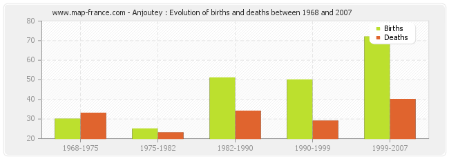 Anjoutey : evolution of births and deaths from 1968 to 2007