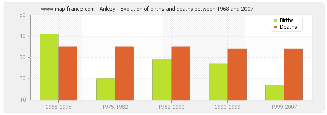 Anlezy : evolution of births and deaths from 1968 to 2007