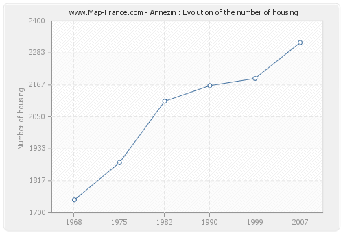 The number of housing of Annezin was 2 321 in 2007, 2 190 in 1999, 2 164 in 1990, 2 107 in 1982, 1 883 in 1975 and 1 747 in 1968.