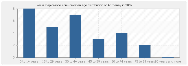 - Anthenay women inhabitants from 0 to 14 years : 8