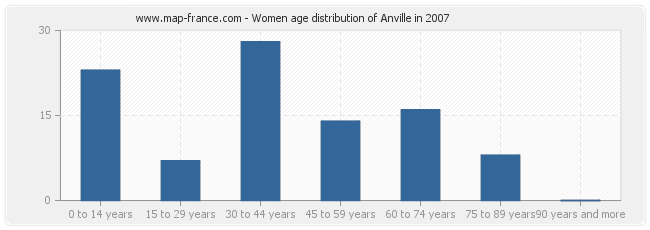- Population of Anville from 30 to 44 years : 29 inhabitants