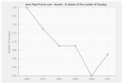 The number of housing of Aouste was 107 in 2007, 102 in 1999, 109 in 1990, 109 in 1982, 113 in 1975 and 118 in 1968.
