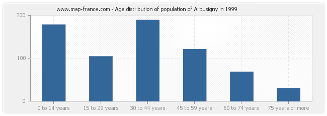 - Population of Arbusigny from 30 to 44 years : 189 inhabitants
