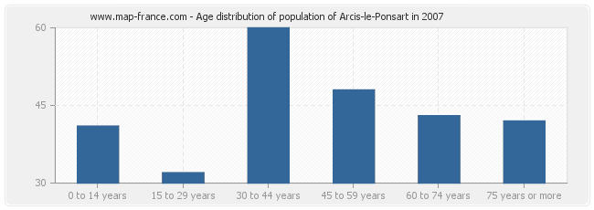 - Population of Arcis-le-Ponsart from 30 to 44 years : 60 inhabitants