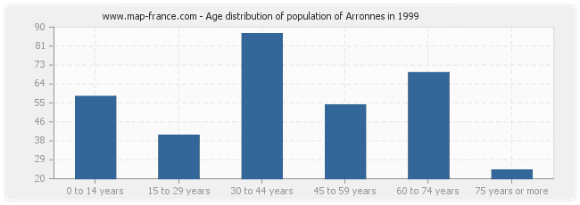 - Population of Arronnes from 30 to 44 years : 87 inhabitants