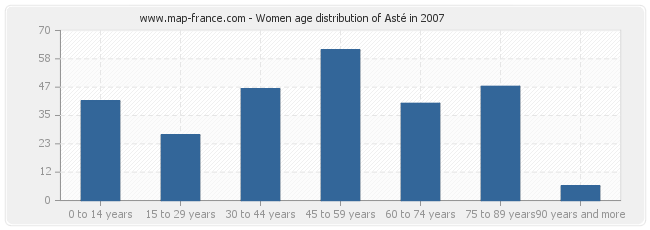 - Asté women inhabitants from 45 to 59 years : 62