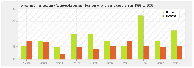 Aubie-et-Espessas : births and deaths from 1999 to 2008