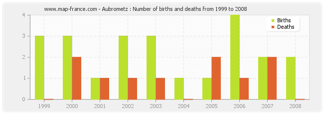 - Aubrometz in 2008 : 2 births and 0 deaths