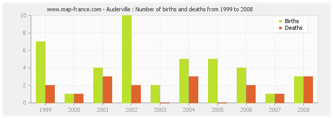 - Auderville in 2008 : 3 births and 3 deaths
