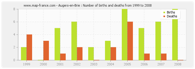 Augers-en-Brie : births and deaths from 1999 to 2008