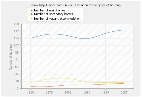 The number of housing of Aujac was 174 in 2007, 163 in 1999, 150 in 1990, 165 in 1982, 164 in 1975 and 145 in 1968.