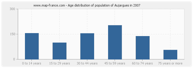 - Population of Aujargues from 45 to 59 years : 202 inhabitants