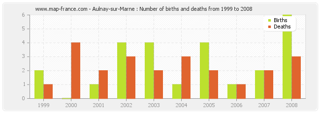 Aulnay-sur-Marne : births and deaths from 1999 to 2008