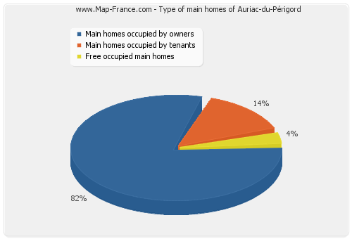 - Number of main homes of Auriac-du-Périgord occupied by owners : 141 - Number of main homes of Auriac-du-Périgord occupied by tenants : 24 - Number of main homes of Auriac-du-Périgord occupied free of charge : 6 |