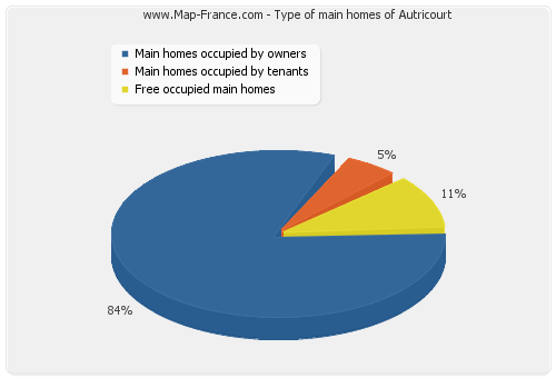 - Number of main homes of Autricourt occupied by owners : 47 - Number of main homes of Autricourt occupied by tenants : 3 - Number of main homes of Autricourt occupied free of charge : 6 |