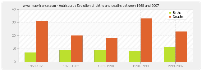 Autricourt : evolution of births and deaths from 1968 to 2007