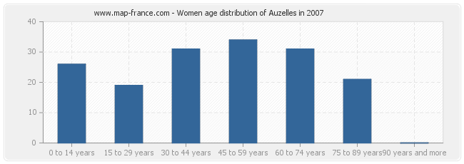 - Auzelles women inhabitants from 30 to 44 years : 31