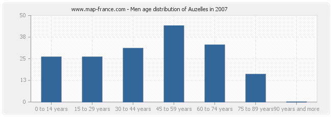 - Auzelles men inhabitants from 45 to 59 years : 44