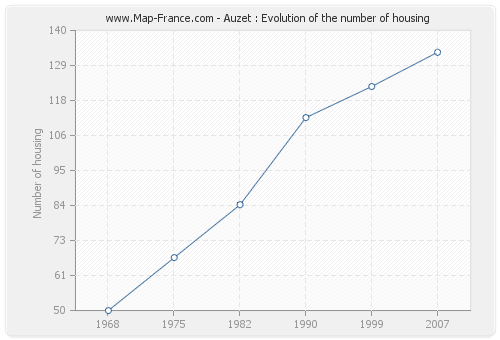 The number of housing of Auzet was 133 in 2007, 122 in 1999, 112 in 1990, 84 in 1982, 67 in 1975 and 50 in 1968.