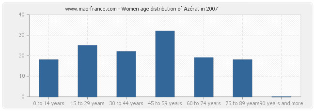 - Population of Azérat from 30 to 44 years : 65 inhabitants
