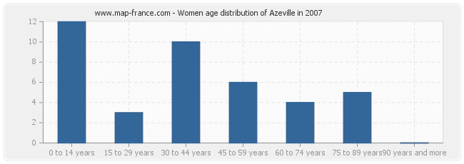 Women population distribution of Azeville by age in 2007 :