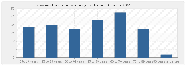 - Azillanet women inhabitants from 60 to 74 years : 46