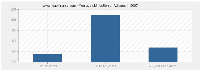 - Azillanet men inhabitants from 20 to 64 years : 109