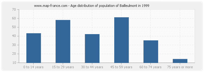 - Population of Bailleulmont from 45 to 59 years : 61 inhabitants