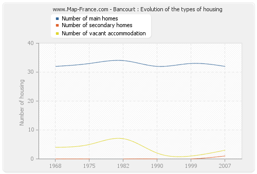 The number of housing of Bancourt was 36 in 2007, 34 in 1999, 34 in 1990, 41 in 1982, 38 in 1975 and 36 in 1968.