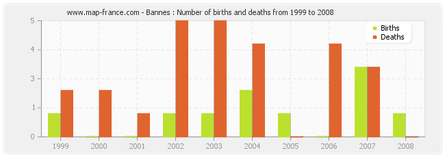 Population of Bannes was 141 inhabitants in 2007, 166 inhabitants in 1999, 203 inhabitants in 1990, 196 inhabitants in 1982, 219 inhabitants in 1975 and 234 inhabitants in 1968.