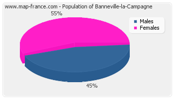 - Men inhabitants Banneville-la-Campagne in 2007 were 50 - Women inhabitants in 2007 were 62